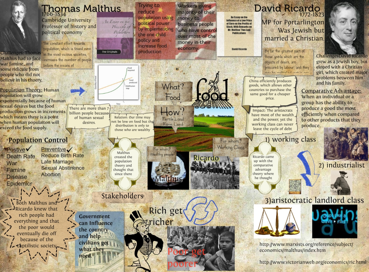 Pensadors econòmics com Malthus i Ricardo, van donar peu a les bases i estructures de les grans potències econòmiques actuals. Totes les tesis, teories i estudis realitzats per ells han estat de gran importància per a tots els estudis actuals tant en matèria econòmica com política.